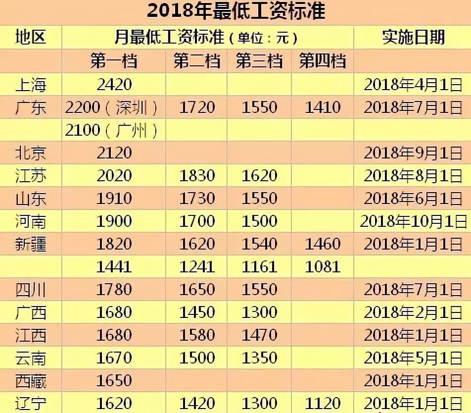 其中,上海月最低工资标准达到2420元,为全国最高。