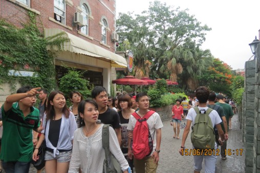 遍布岛上的各色建筑,独具中西方特色,曾经这里却是各国使馆的聚焦地;还有就是各类旅馆和商业街,红红火火,人头攒动,到了这里,不得不感叹旅游所带来的经济繁荣。