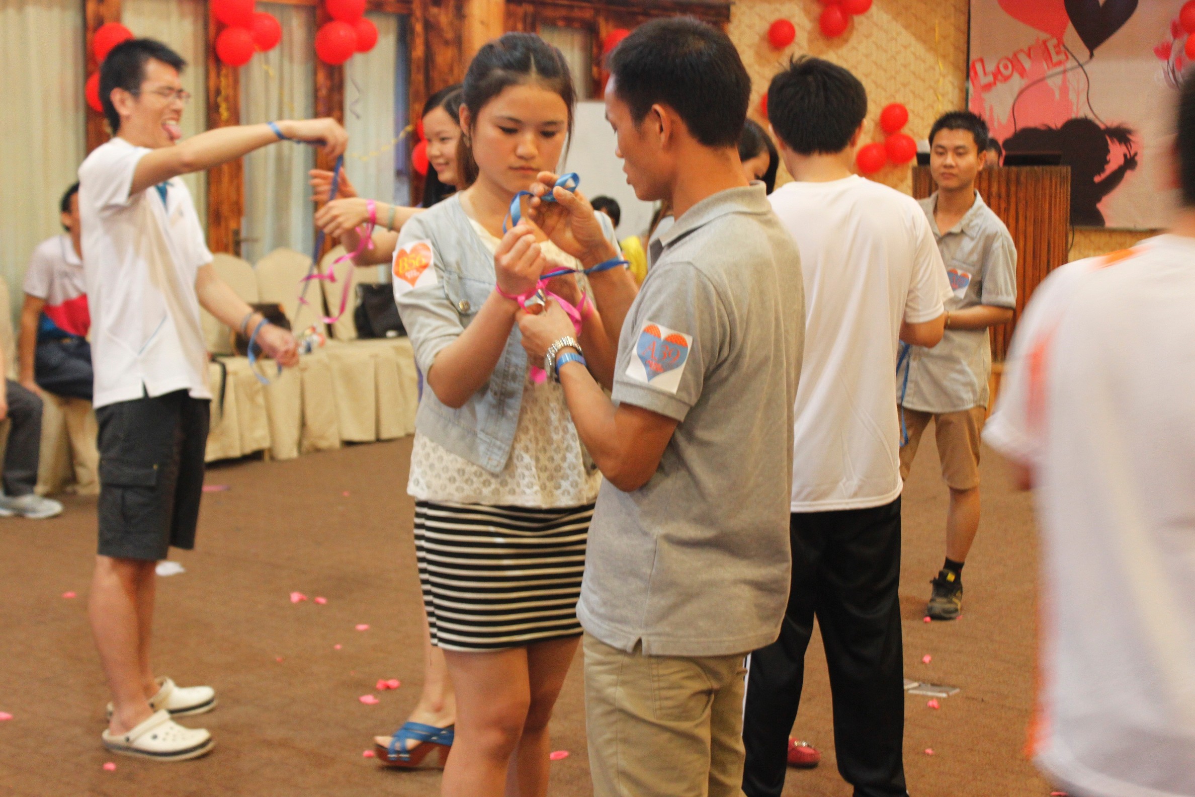 活动首先从“情留缘分墙”填写个人资料开始拉开序幕,留下基本信息后,进入“有缘千里来相会,大家初相识”环节,接近中午进行就餐,进一步沟通交流,并观看水上文艺表演。下午主要进行游戏、加深认识环节,“气球大转盘”,改良版“真心话大冒险”,气氛活跃,爆笑连连,最后一轮游戏是“心有千千结”,由20位男士主动邀约女士进行互动。一系列的游戏,让在场的朋友对彼此都有了更深刻的了解,因此在集体《兔子舞》之后,进行了“选出心动的ta”速配环节,配对成功的将进行牵手,送出玫瑰花,说出爱的表白。可喜的是,当场互相有好感的共有12对主动出位向大家公开表白,互相配对成功。之后是“记下爱的信息”查看缘分墙资料环节,最后活动在碧波泛舟及自由活动之后,拉下帷幕。