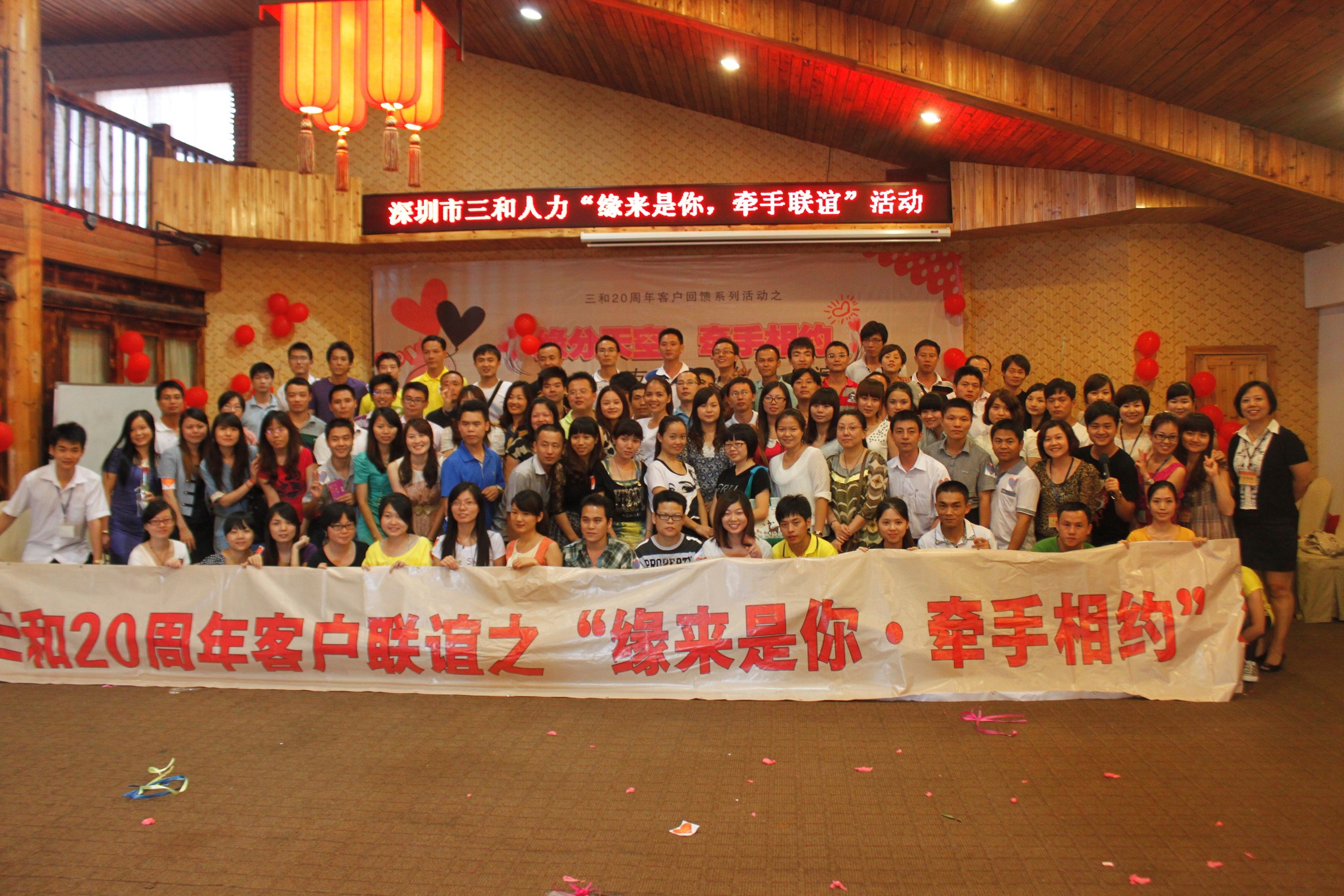 台风过境,2012年7月1日是一个清空万里,让人神清气爽的日子,这一天是建党九十一周年纪念日,亦是香港回归十五周年日,同时三和也在这样喜庆的一天举办了三和人力第二届牵手活动。此次联谊活动共有91名单身客户参与,其中47名男生、44名女生,男女比例接近1:1。