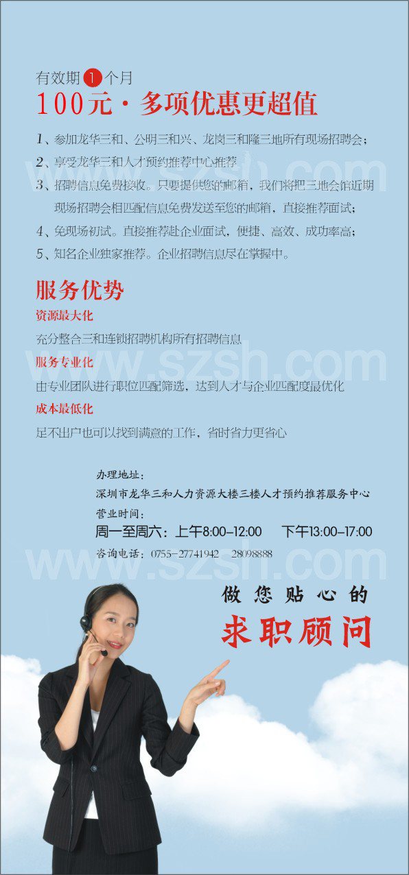 1、人才预约推荐服务是三和连锁机构为提高企业招聘效果,回馈会员客户的一项增值业务,推广期会员客户可专享免费服务。
