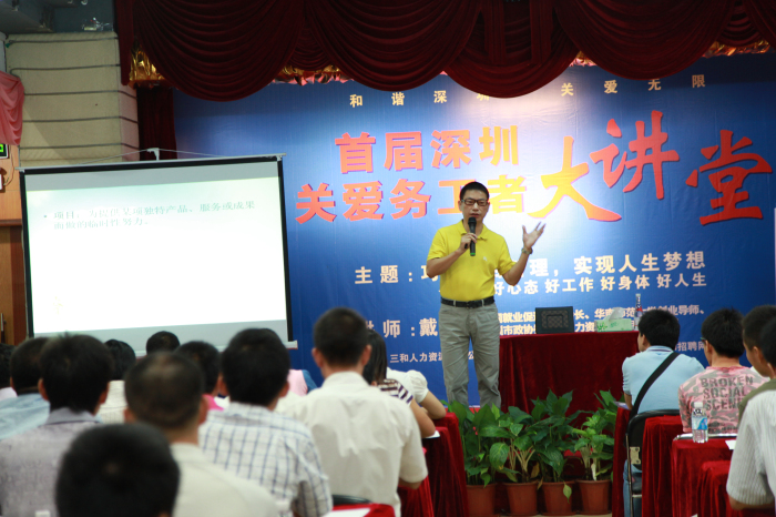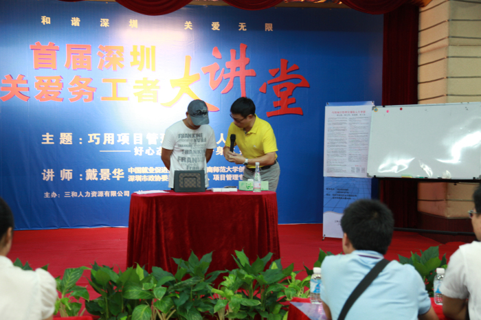 8月17日,深圳市三和人力资源有限公司举办首届深圳关爱务工者大讲堂,300多名务工朋友慕名前来,齐聚一堂,分享中国就业促进会副会长、华南师范大学创业导师、深圳市政协委员、人力资源及项目管理专家戴景华先生给大家带来的“巧用项目管理,实现人生梦想——好心态、好工作、好身体、好人生”精彩课堂。