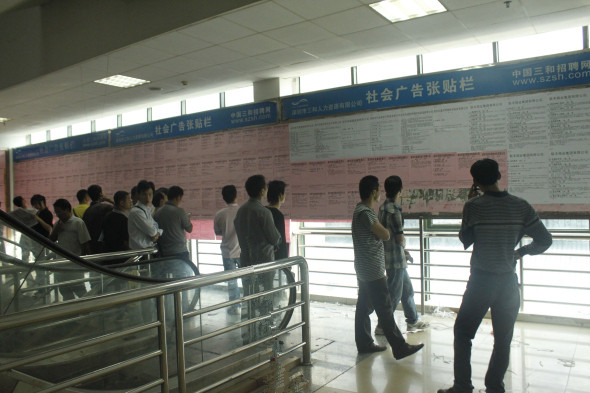 龙华三和三楼免费招聘信息栏吸引了前来找工作的朋友们驻足查看