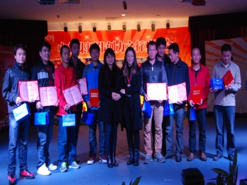 紧接着,晚会步入了特别设置的优秀员工颁奖环节,专门为在驻厂期间表现良好的员工授予荣誉奖励,其中共有13位员工及驻厂管理干部共同分享了这一奖项,并由伟创力MECH 计划部总监Karen Jiao 女士、EG Zheng先生以及三和源集团副总刘女士等高层领导一一为获此殊荣的优秀员工颁发了荣誉证书和纪念礼品,对他们的获奖表示祝贺。