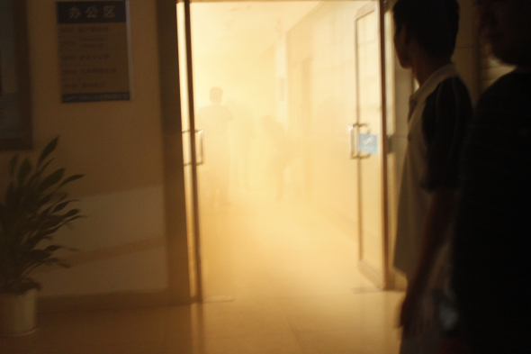 下午16时30分演练正式开始。为达到实战演练效果,提高组织人员疏散逃生能力,公司所有部门竭力配合。随着一声电铃的拉响,100余名员工在疏散人员的指引下紧张有序地进行疏散,他们用手和衣服掩住口鼻,扶着楼梯有秩序地迅速撤离危险地带,在楼梯拐弯处,楼层疏散员指挥员工迅速疏散,做到了紧张而不慌乱,人多而不拥挤,直到所有人通过,楼层的疏散员才迅速撤离。不到5分钟的时间,全部人员到达集合地点集结。工作人员对人员进行清点,确保全部人员得到安全疏散。在疏散的过程中,由于其中一道消防安全门不慎封闭,造成了人员逃生阻碍,延长了人员撤离时间。这也恰好给我们一个很好的警示:日常要加强安全管理,保证消防通道的顺畅。