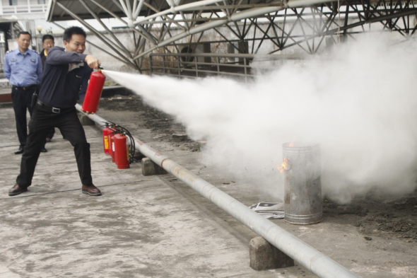 最后,安全队队长钟队对此次逃生演练进行了点评指导。钟队长指出:此次公司的消防安全逃生演练,基本达到演练的目地。在充分肯定演练取得成功的同时,还向员工详细讲解了灭火器的使用方法并对个别职工不规范、不正确的操作进行了指导和纠正,进而使参与者都能熟练掌握灭火技巧。