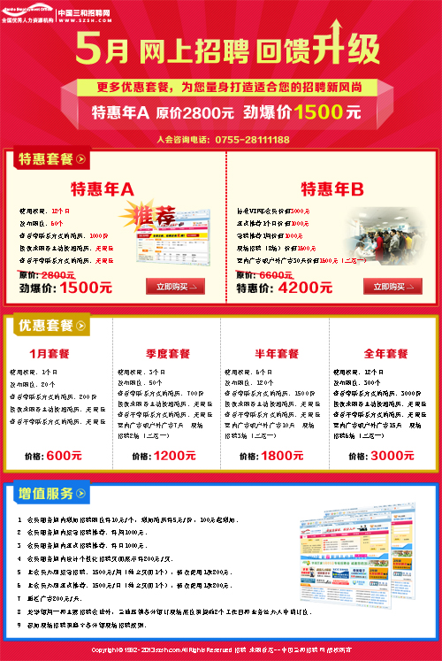 5月特惠年会劲爆价1500元,网上招聘回馈升级...
