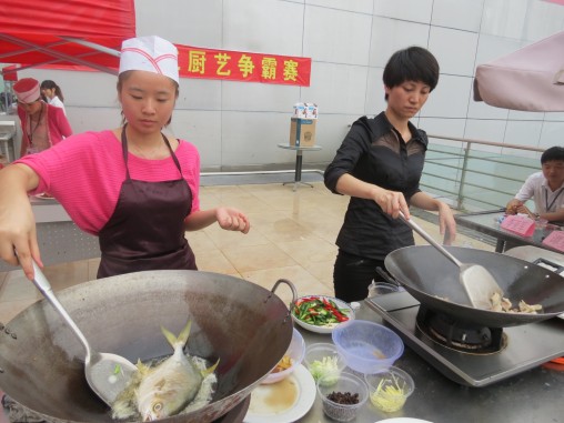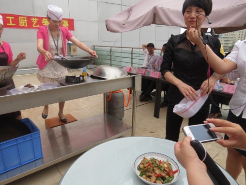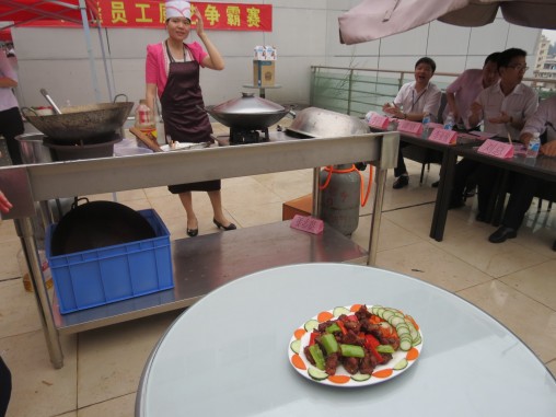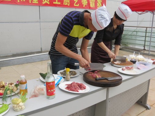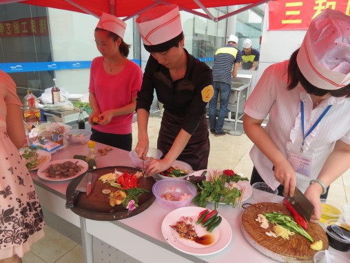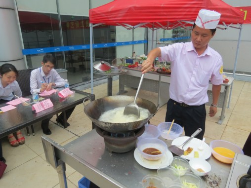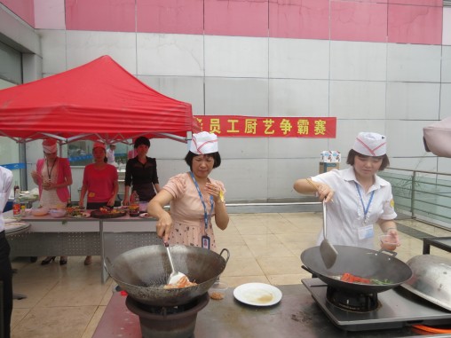要不要来点掌声?呐喊声?只见加油助威的队伍阵势还未摆开,叮叮当当的锅碗瓢盆就清脆的奏响了一曲曲美妙的“厨房神曲”,诱人的溢香扑鼻而来,刺激着大家的食欲。请看,三和隆“厨艺争霸”大赛开始了……