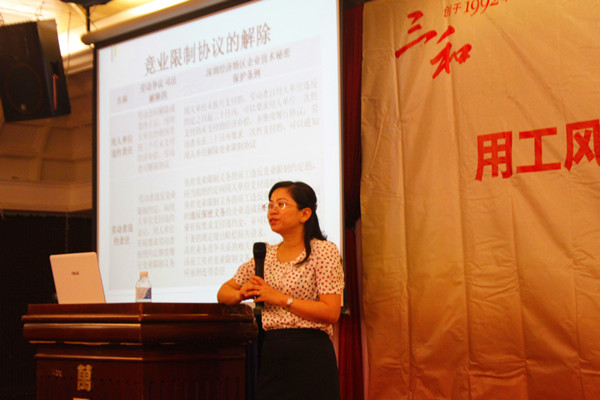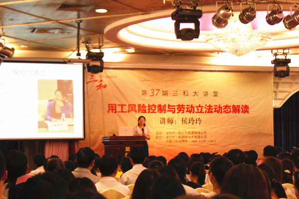 第37期三和大讲堂的主讲人是深圳大学法学院副教授侯玲玲博士。侯玲玲教授,是中国法学会社会法学会理事、广东省法学会社会法学会常务理事、广东省劳动学会暨人力资源协会理事、深圳市人力资源协会法律顾问组成员、深圳市劳动人事仲裁院兼职仲裁员、深圳市中级人民法院特邀调解专家。她曾参与《中华人民共和国劳动合同法》、《中华人民共和国就业促进法》《最高人民法院关于审理劳动争议案件适用法律若干问题的解释(四》等专家论证。