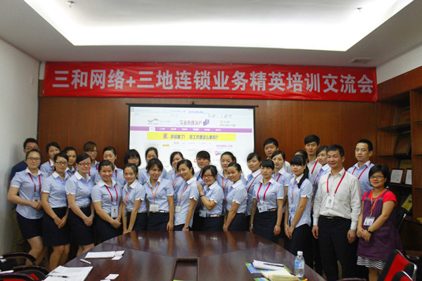 5月29日下午4点,三和网络技术有限公司及三和人力连锁龙华三和、龙岗三和隆、公明三和兴三地业务精英欢聚三和龙华总部三楼会议室,召开了以 “学习网上招聘会员的操作、售后服务技巧、网络优势”为主题的精英交流会。