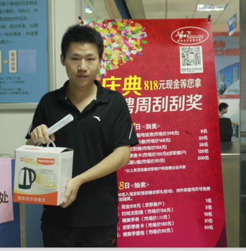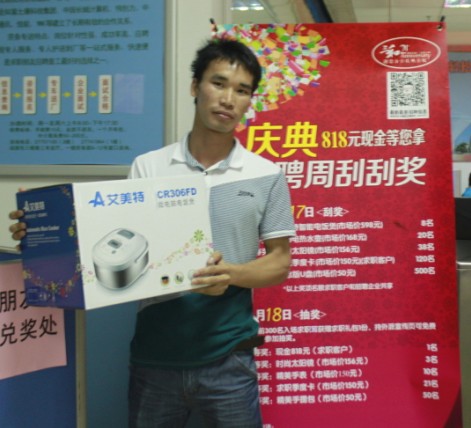 早起的鸟儿有虫吃。今天一大早,我们的一等大奖就被我们的求职者刮到了,价值518元的艾美特电饭锅,看到我们的求职者欣喜过度到都不想面试了,想早点抱着锅回家跟家人分享了。一等大奖八个名额,已产生四名,那么剩下的四名将会花落谁家呢?三和21周年庆招聘周刮刮奖将会持续到17号,18号将会有压轴登场的抽奖活动,快来加入三和的喜悦中来吧,说不定下一个中大奖的就是你哦!