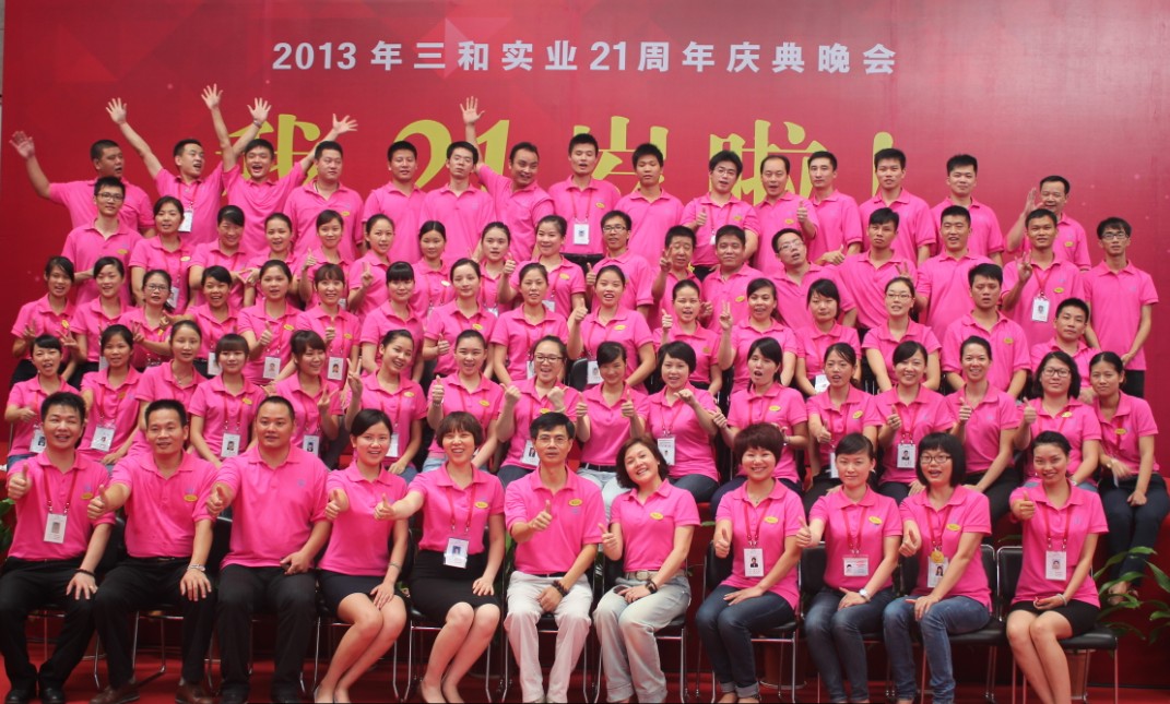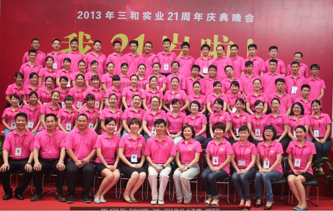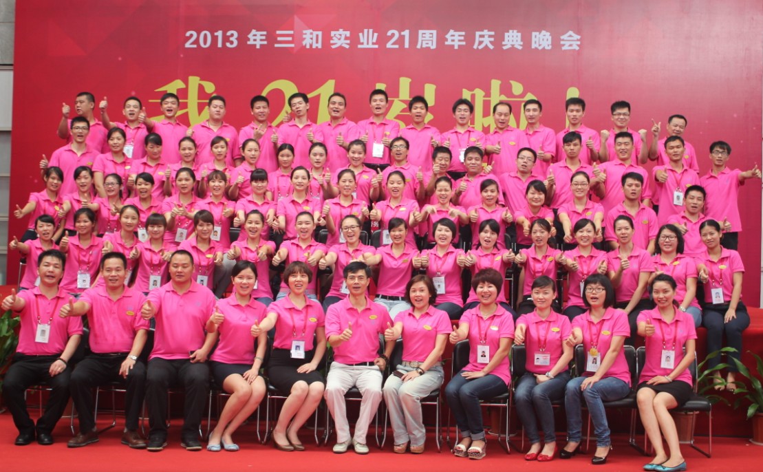 2013年8月18日,‘三和实业21周年庆典晚会’圆满结束。在这一天,三和全体员工将最后的激情瞬间绽放,浓浓的喜悦喷涌而出。