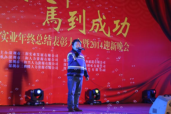 小龙游罢清平世,骏马腾欢大有年。2014年1月7日下午,深圳市三和实业发展有限公司全体成员齐聚龙华总部,欢聚一堂,共贺新年,同享欢乐,笑迎“三和实业年终总结表彰大会暨2014迎新晚会”。