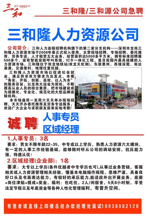 三和隆人力资源公司招聘信息