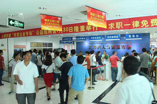 新址配备了大型中央数显电子屏、安检门禁一体化、智能刷卡联网三和信息系统;设置求职填表、电脑查询区、企业等候室等配套多功能区域,营造出与购物中心同样舒适的高档次聘求环境。自7-28、29日来已开门迎客试业两天,受到招聘企业和求职朋友的高度赞誉。