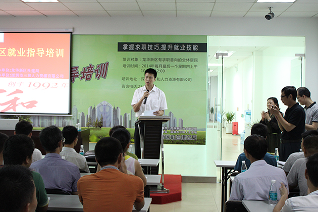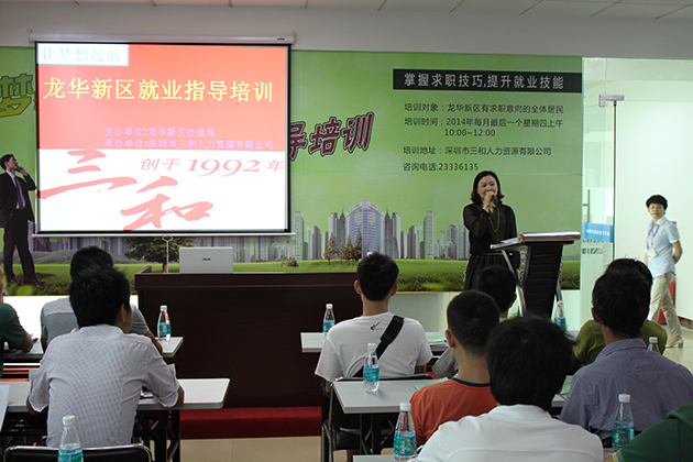 活动开始前,三和人力资源有限公司总经理许琴女士做了简短的讲话,表达了对在场所有朋友的热烈欢迎,并希望更多的朋友能够参与进来,了解并学习更多的培训内容。随后龙华新区社会建设局王局长发表重要讲话,他指出这次活动的重要性,希望以后举办更多的类似活动来帮助正在求职的朋友,为他们出一份力。