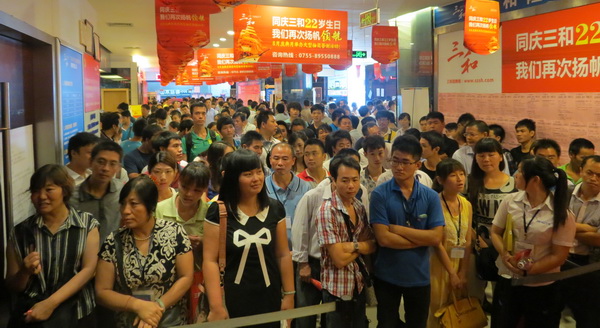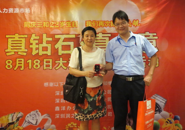 共有800多企业代表和求职朋友共同见证三和生日庆典,在大家的期许之下,特等奖钻戒、一等奖黄金吊坠最终“名饰有主”,抽奖活动圆满结束。八月更多客户活动及优惠详询0755-89550888转各区域经理
