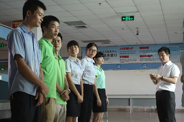 19日下午,陈经理在四楼培训教室正式给大家展开培训。为了进一步的让新入职的员工对周围的环境有一个新的认识,陈经理首先让大家组成一个小团队,并且逐一的自我介绍,并了解大家。