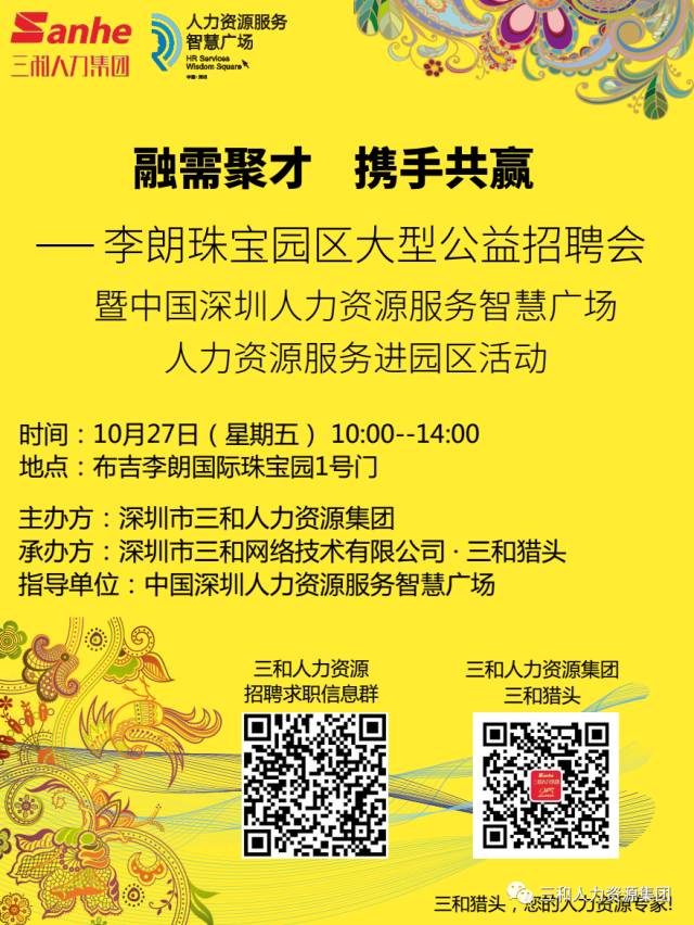 本次招聘会是三和集团继天安云谷公益招聘会后又一个服务社会的公益招聘会,三和集团也励志将“为社会服务”的理念贯彻下去,接下来请随小编强势围观一下本次招聘企业和职位吧!