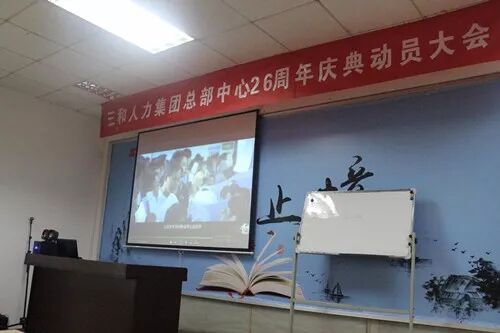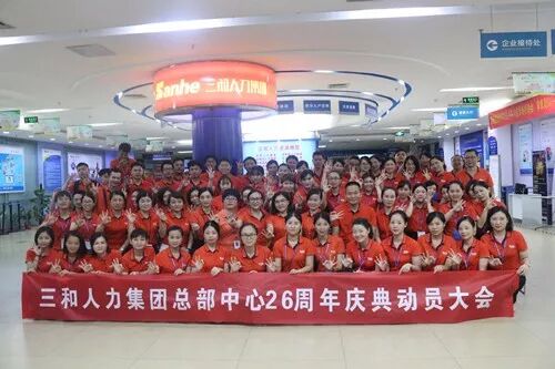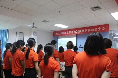 2018年7月10日下午,三和人力集团在四楼会议室召开26周年庆典动员大会,集团总经理许琴女士、各部门负责人以及全体员工出席周年庆动员大会。