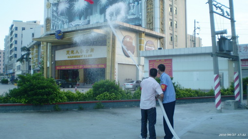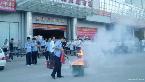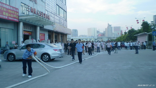 演习过程一共分为三大块,第一部分是火灾应急疏散:由导演组设置事故起火点后,再经参演消防人员巡检到起火情况,并立即呼叫安全小组成员,通报相关火警情况,而安全小组成员也在第一时间逐级上报相应信息;同时,安全小组总指挥在第一时间获得上报信息后,也立即发布命令,启动三和隆消防应急预案,要求安全人员迅速进入战备状态,全力协助全体人员紧急向外疏散,开始紧张的“逃生自救”环节。与此同时,公司内部的消防人员正携带着消防器材快速的赶到起火现场,对火灾进行强力的扑灭,而且很快火势就在大家的极力扑救下得到了控制,几分钟后,宣布火警警报解除,演习进入第二部分。