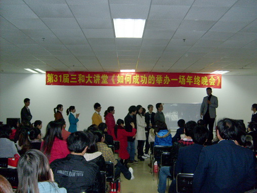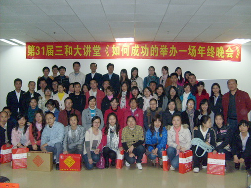 同时,从课堂的气氛来看,本期《三和大讲堂》的效果也是令大家获益的,单宝中导演根据“企业年会”的特点为大家一一讲述了活动台前幕后的所有筹备流程和细节,紧紧围绕晚会的内容要点进行提示和总结,不时的向大家奉献从业以来的经验和技巧,整体来说,大家最直接的感受还是单宝中老师不拘一格的讲课风格,更多的体会到他从实践当中积累的心得,难能可贵。很多时候,企业要求组织举办文艺活动,可毕竟大家不是专业的导演,也没学过演出艺术,老板却要求晚会必须达到相当水准;或者晚会花钱不少,却不够热烈,总是有些环节掉链子,现场手忙脚乱,出了不少洋相;也可能出现计划的节目还没演到一半,现场的人差不多走光了。这些情况对于大型活动举办经验少的组织人员来说,确实挺棘手的。如何让年终晚会成为欢乐的海洋,和谐的主场?如何通过年终晚会展现组织者非凡的组织、策划能力?如何让员工通过这场晚会忘记一年的辛劳、唤起对企业的感恩与勤勉?如何让这场晚会成为感动员工心灵的盛大联欢、成为彰显团队文化的舞台?相信有到场听过本期《三和大讲堂》的人员再结合自身的经验,一定会对今后的活动策划大有裨益。