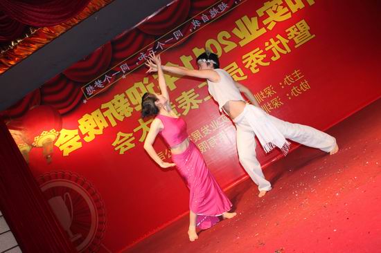 晚上,全体三和人在多功能厅一起吃团圆饭,并欣赏了三和人自编自演自导的迎新晚会。晚会上,戴董事长兴致勃勃的盘点了三和团队2010年的成绩,并表示为了鼓励大家继续努力,在2011年三和将以绩效工资的形式给所有优秀的员工加薪。三和也将加大员工的培训力度,为员工创造一个持续发展的工作条件。在戴董事长的鼓舞下,现场的三和人都激动不已,整个晚会气氛火热非常。三和隆精心准备的小品——《另类T台秀》,搞笑的造型博得了观众的阵阵喝彩,舞蹈《孔雀》和《billie jean》的专业水平,令大家眼前一亮。三和人力美女们的舞蹈、歌曲和诗朗诵精彩纷呈,安全部帅哥们的《铁打的营盘流水的兵》唱出了三和团结一心的精神,呼声一浪高于一浪。