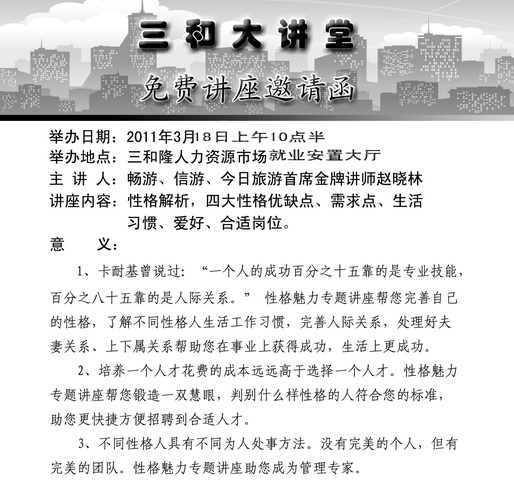 免费讲座《性格魅力》现正接受报名