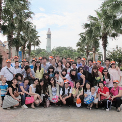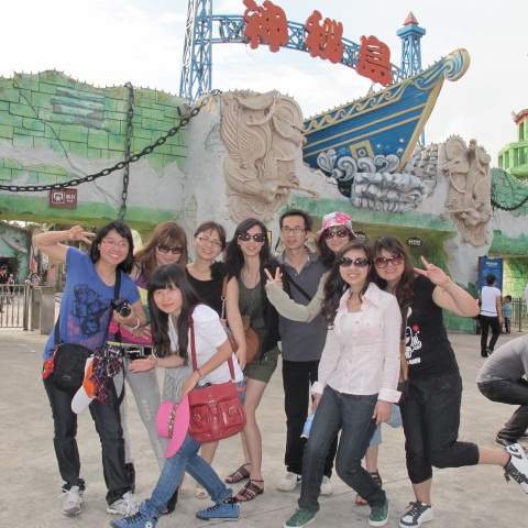再下面,就五花八门了,有玩海盗逃生船的、弹射式云宵飞车的、还有互动影视、神秘剧场,以及惊涛骇浪等等,不一而尽。重要的是,据说这些都是号称夺得多项亚洲第一的项目,不仅玩过的人过了瘾,开开心心;没来得及玩的人,也是观赏了个遍,不虚此行。不过,玩归玩,乐归乐,最终还是自己人亲,赶忙来张“全家福”先:看,茄子!![]()