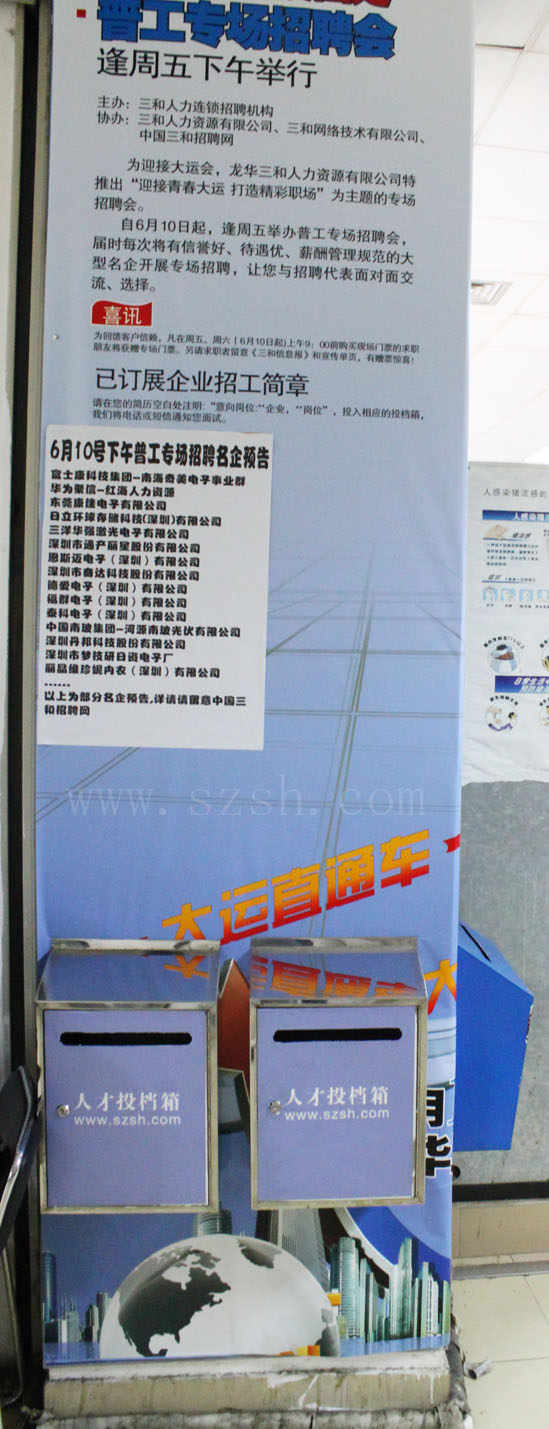 “大运直通车”服务业专场招聘将于12号(本周日)在龙华三和会馆举行,更多详情请留意网站首页专题宣传。