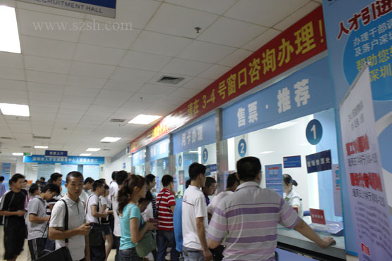 2、 鉴于人流量大,求职者人数较多,三和人力在三楼售票大厅内增开多个售票窗口,减少求职者排队购票的等待时间。