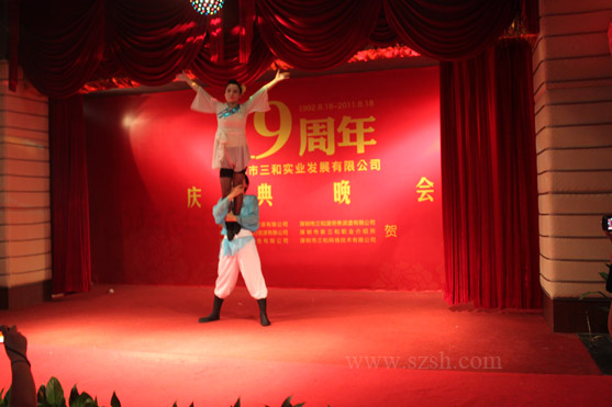 三和的员工们也利用工作之余的时间精心编排了一个个精彩的节目,以此表达对公司的热爱和感激之情,用我们的歌声和舞蹈、用我们的激情和热情向三和十九岁生日献上最真诚的祝福!相声、小品、口琴、歌曲、舞蹈,精彩的节目尽显三和员工的多才多艺。