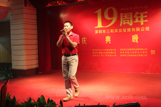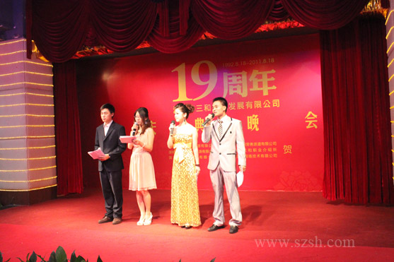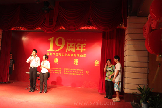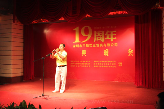 8月18日晚,龙华三和多功能厅内灯火辉煌、花团锦簇,到处都被装扮一新,到处都洋溢着节日的喜庆,一派欢乐祥和的气氛。三和实业发展有限公司全体员工和各界嘉宾齐聚一堂,共同欢庆三和实业成立十九周年