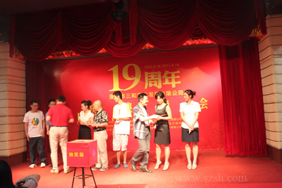 作为晚会的重要组成部分,穿插进行的员工抽奖活动则一次次的点燃了现场的热烈气氛,中奖者兴高采烈,不中者重在参与,总之欢乐是晚会主题。